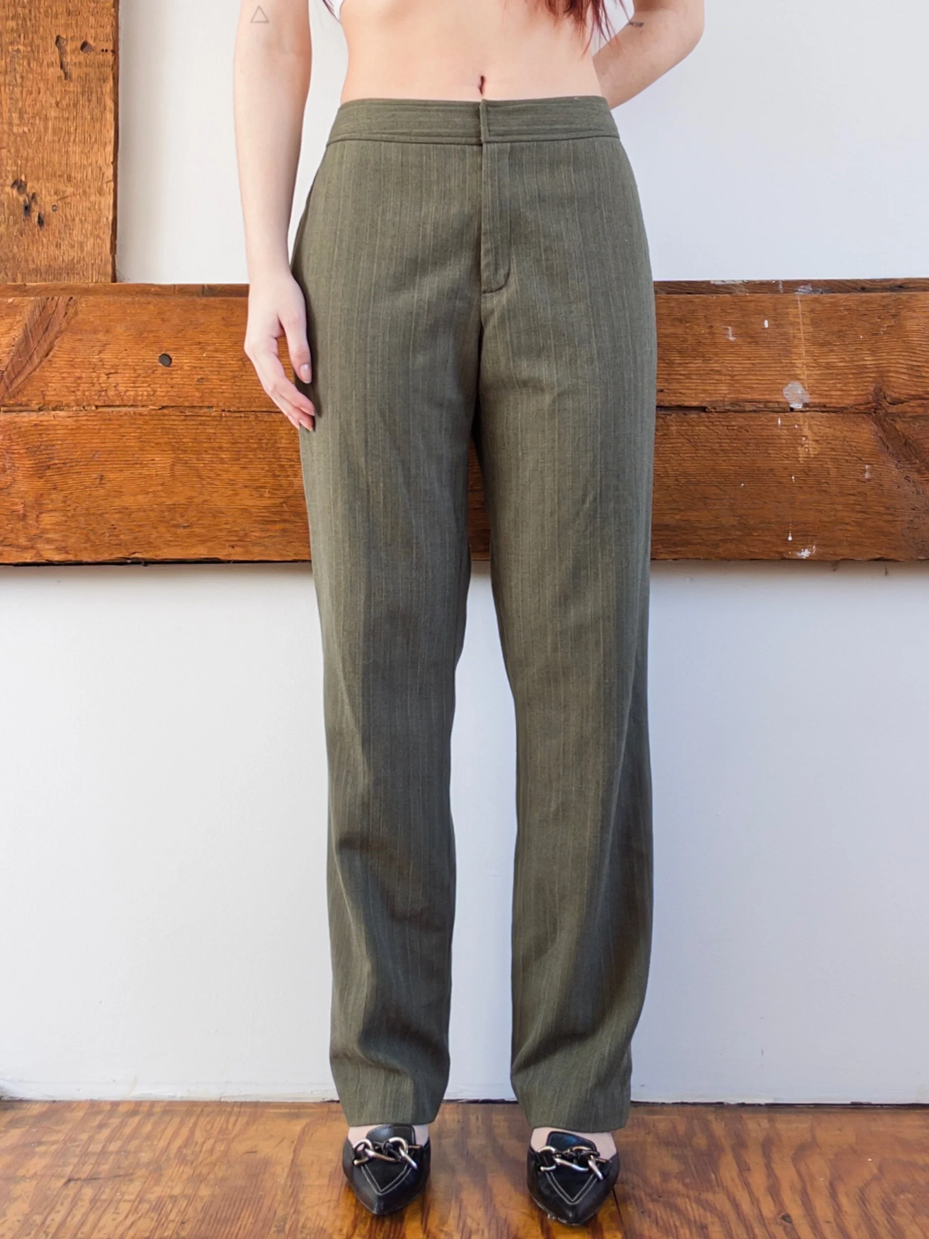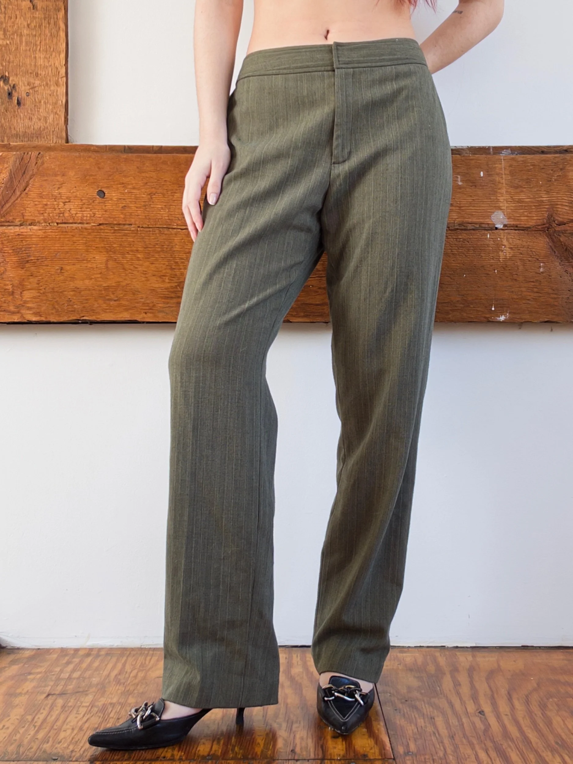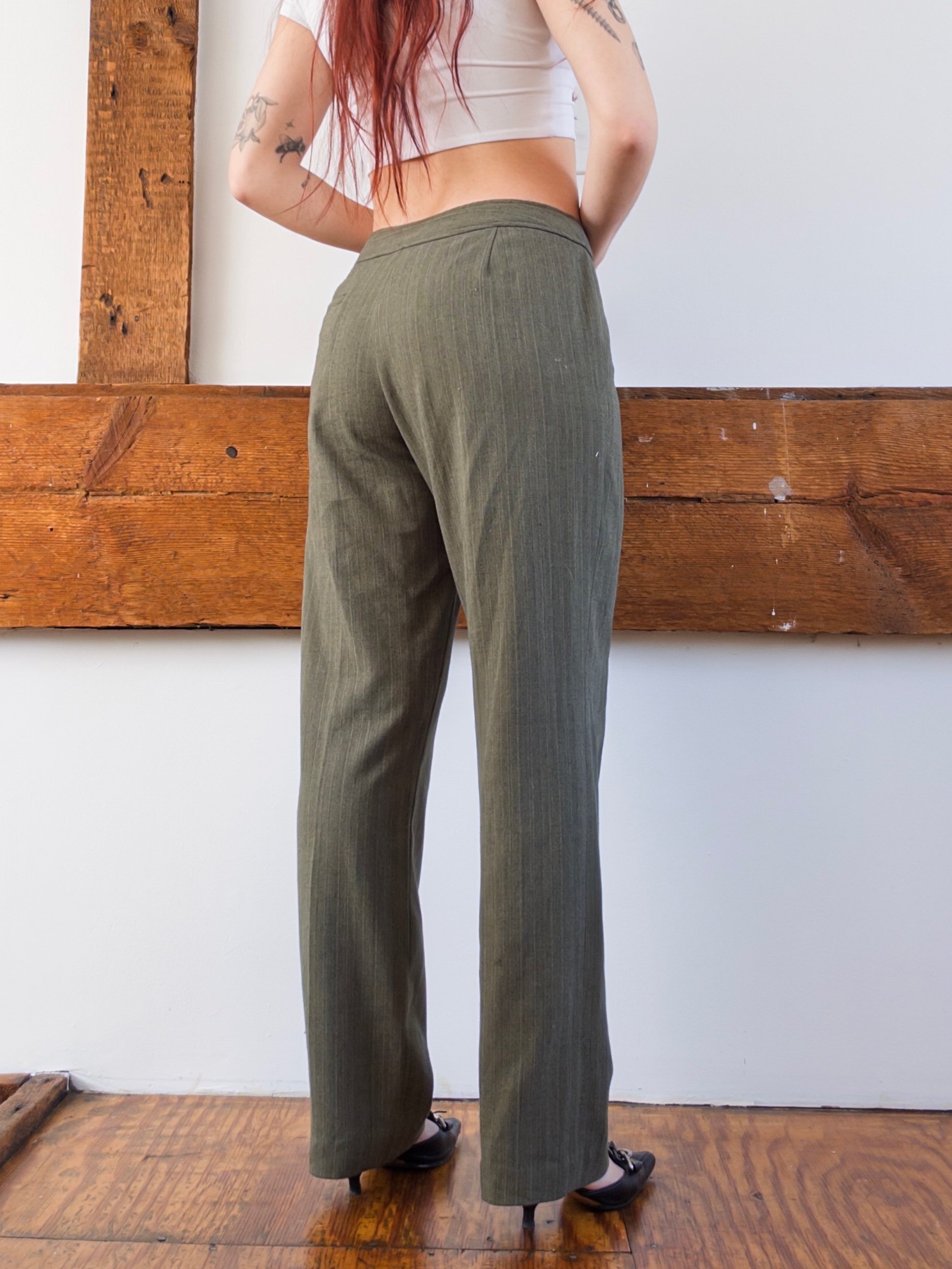 Shop › Green Trousers Image 1 of 5 Image 2 of 5 Image 3 of 5 Image 4 of 5 Image 5 of 5 Green Trousers $36.00 size 10, mid rise33” waist, 10.75” rise, 41” waist, 31” inseam62% polyester, 33% rayon, 5% spandex Add To Cart Added! size 10, mid rise33” waist, 10.75” rise, 41” waist, 31” inseam62% polyester, 33% rayon, 5% spandex