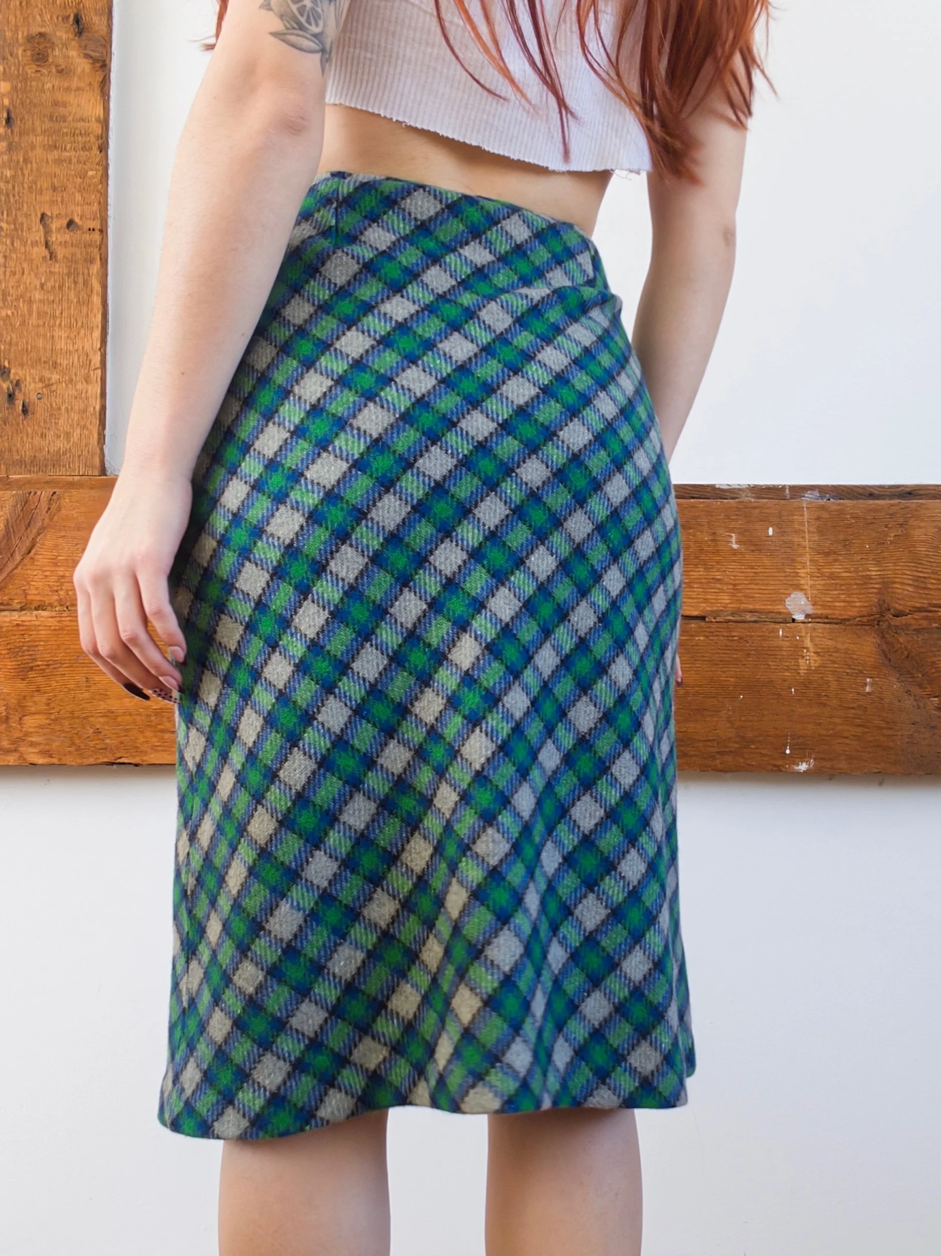 Shop › Green Plaid Midi Image 1 of 4 Image 2 of 4 Image 3 of 4 Image 4 of 4 Green Plaid Midi $46.00 70% wool 14% nylon 9% polyester 5% acrylic 2% others26” waist 27” length Add To Cart Added! 70% wool 14% nylon 9% polyester 5% acrylic 2% others26” waist 27” length
