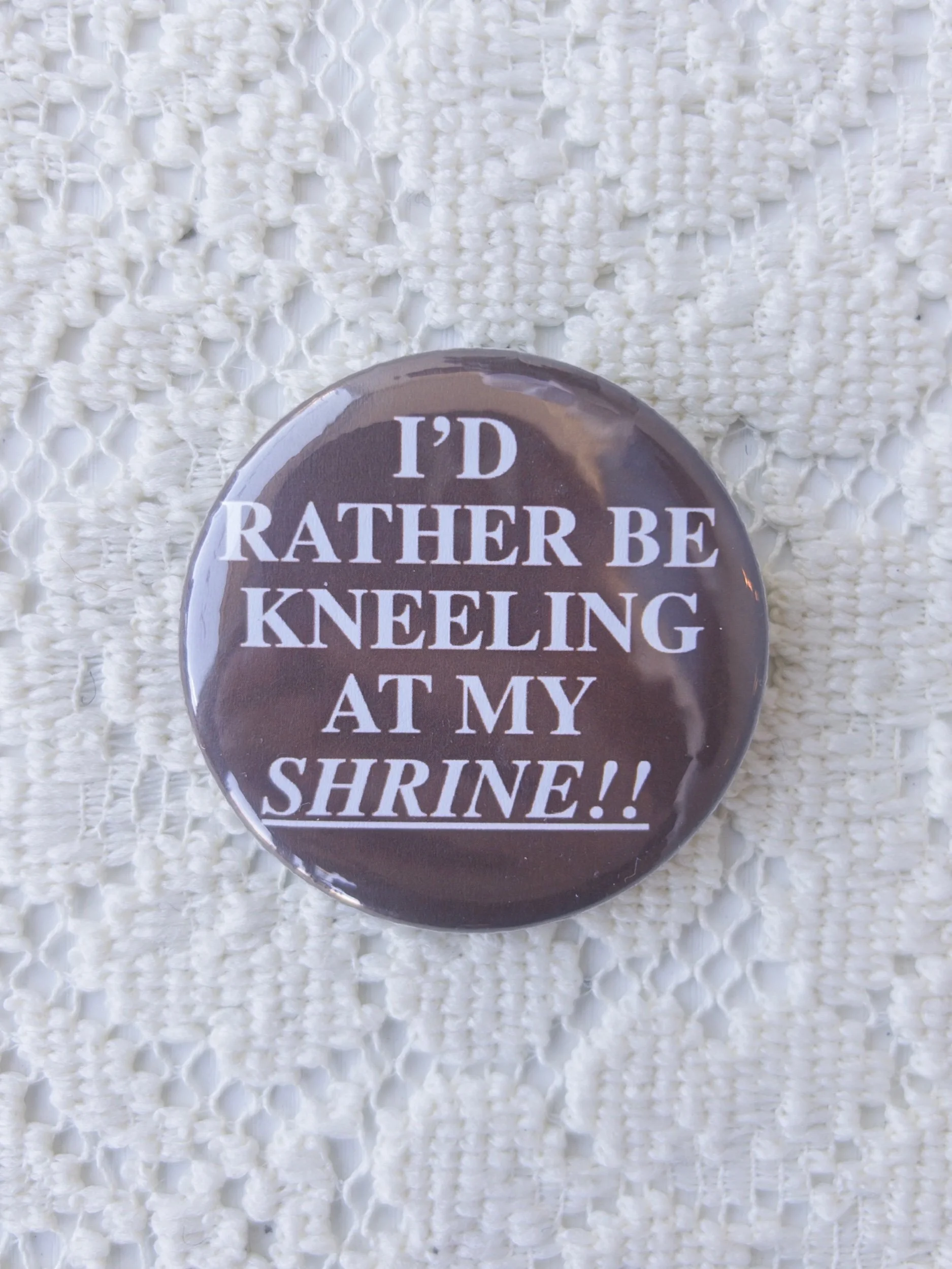 Shop › Shrine Pin Image 1 of 2 Image 2 of 2 Shrine Pin $6.00 2.25” pin by Tinky Footwear Add To Cart Added! 2.25” pin by Tinky Footwear
