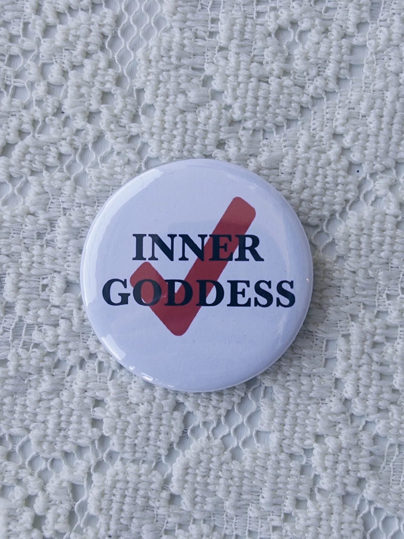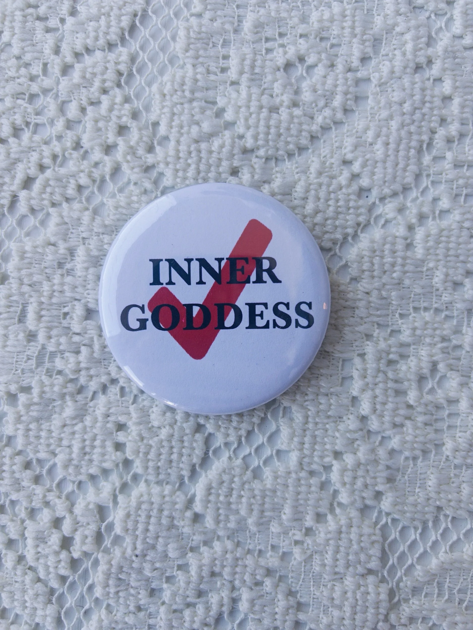 Shop › Inner Goddess Pin Image 1 of 2 Image 2 of 2 Inner Goddess Pin $6.00 2.25” pin by Tinky Footwear Add To Cart Added! 2.25” pin by Tinky Footwear