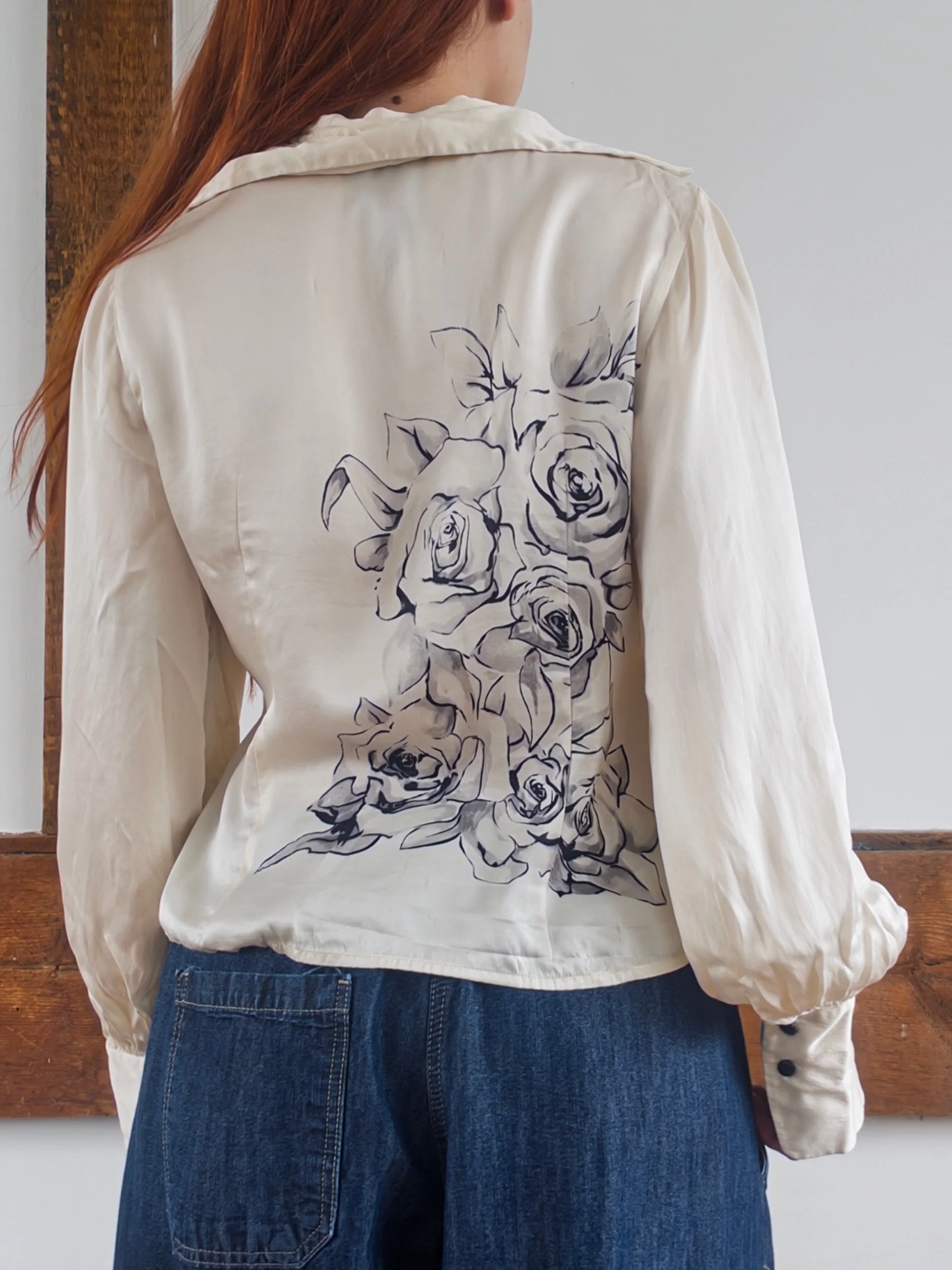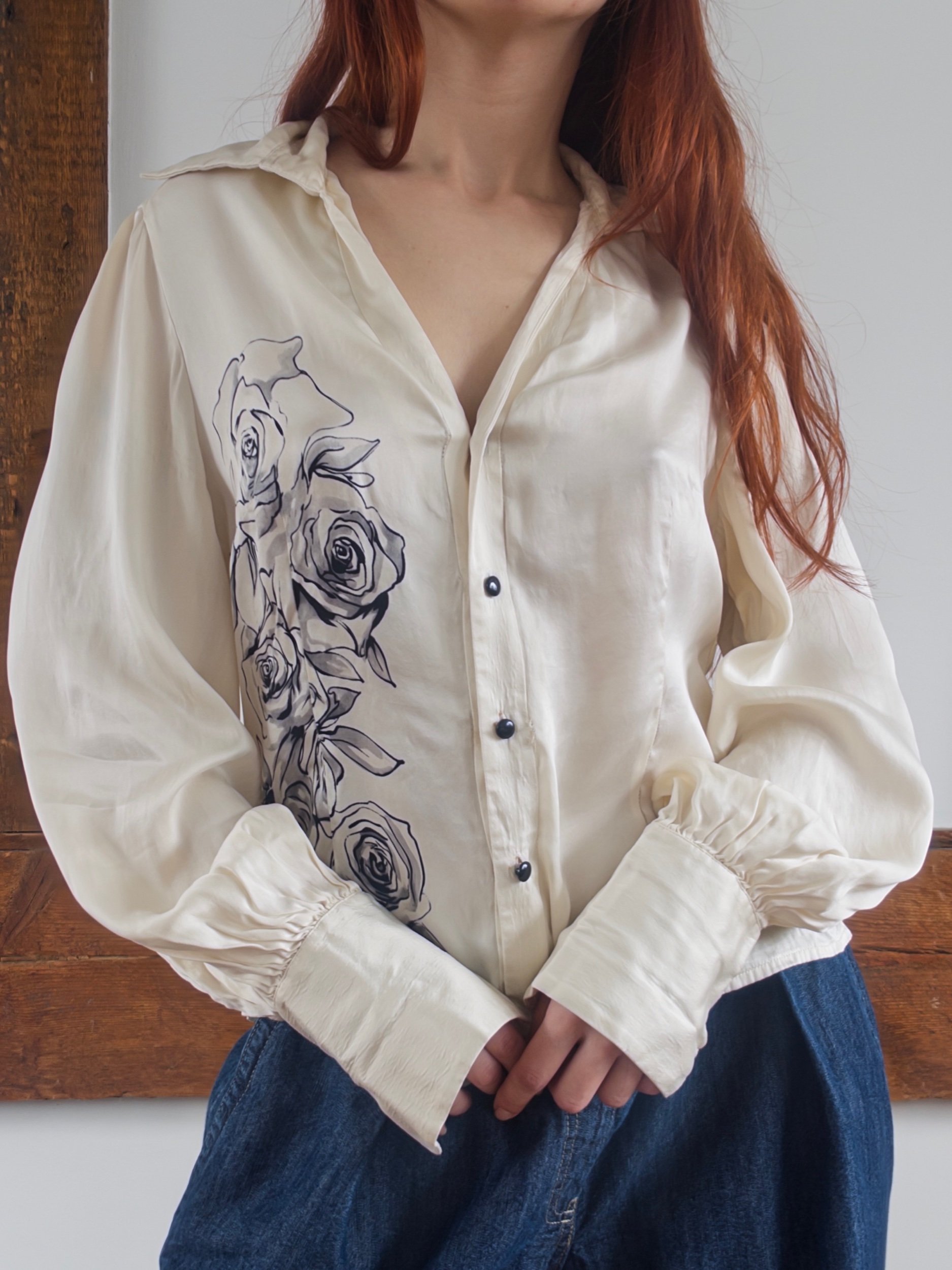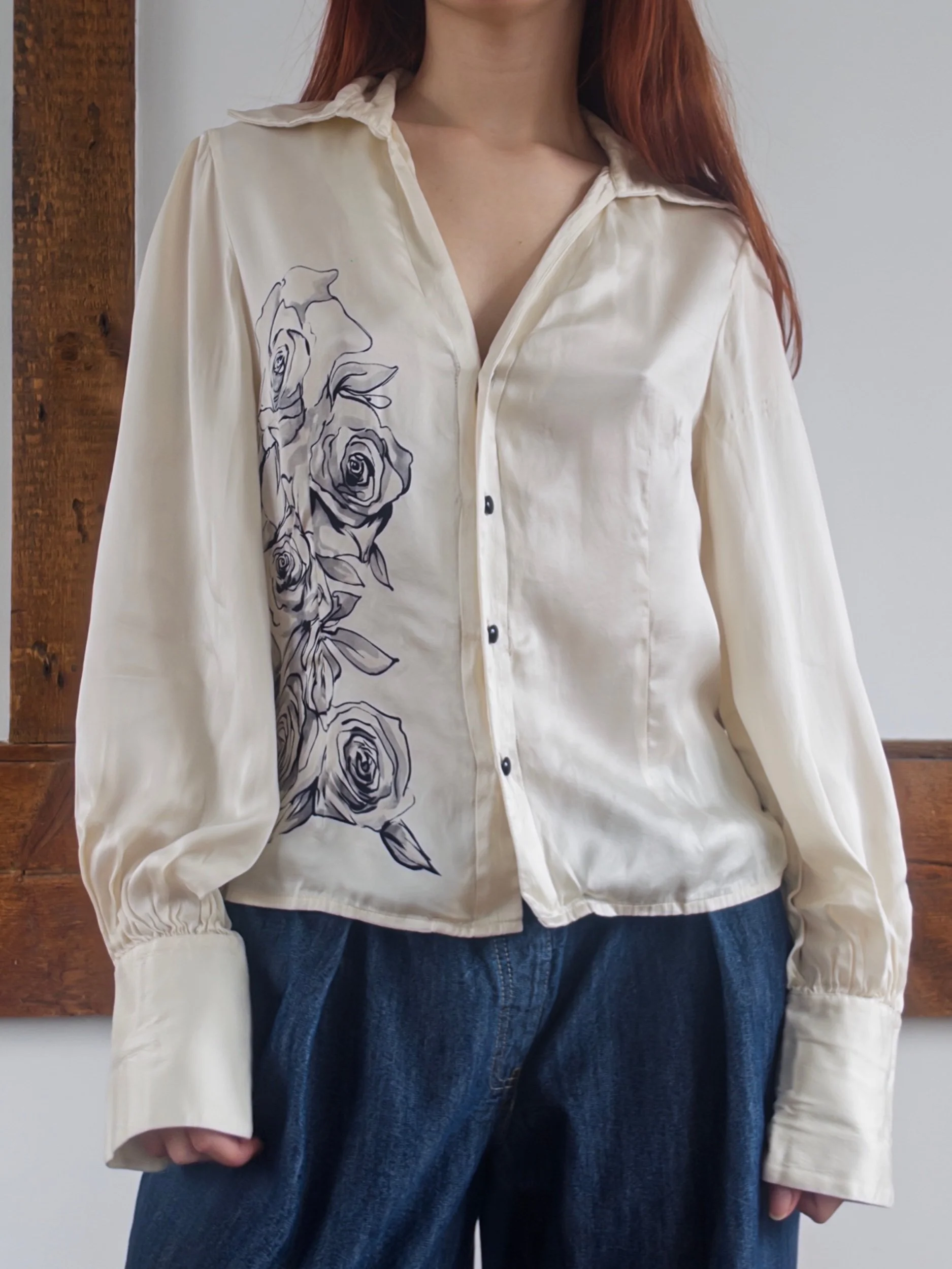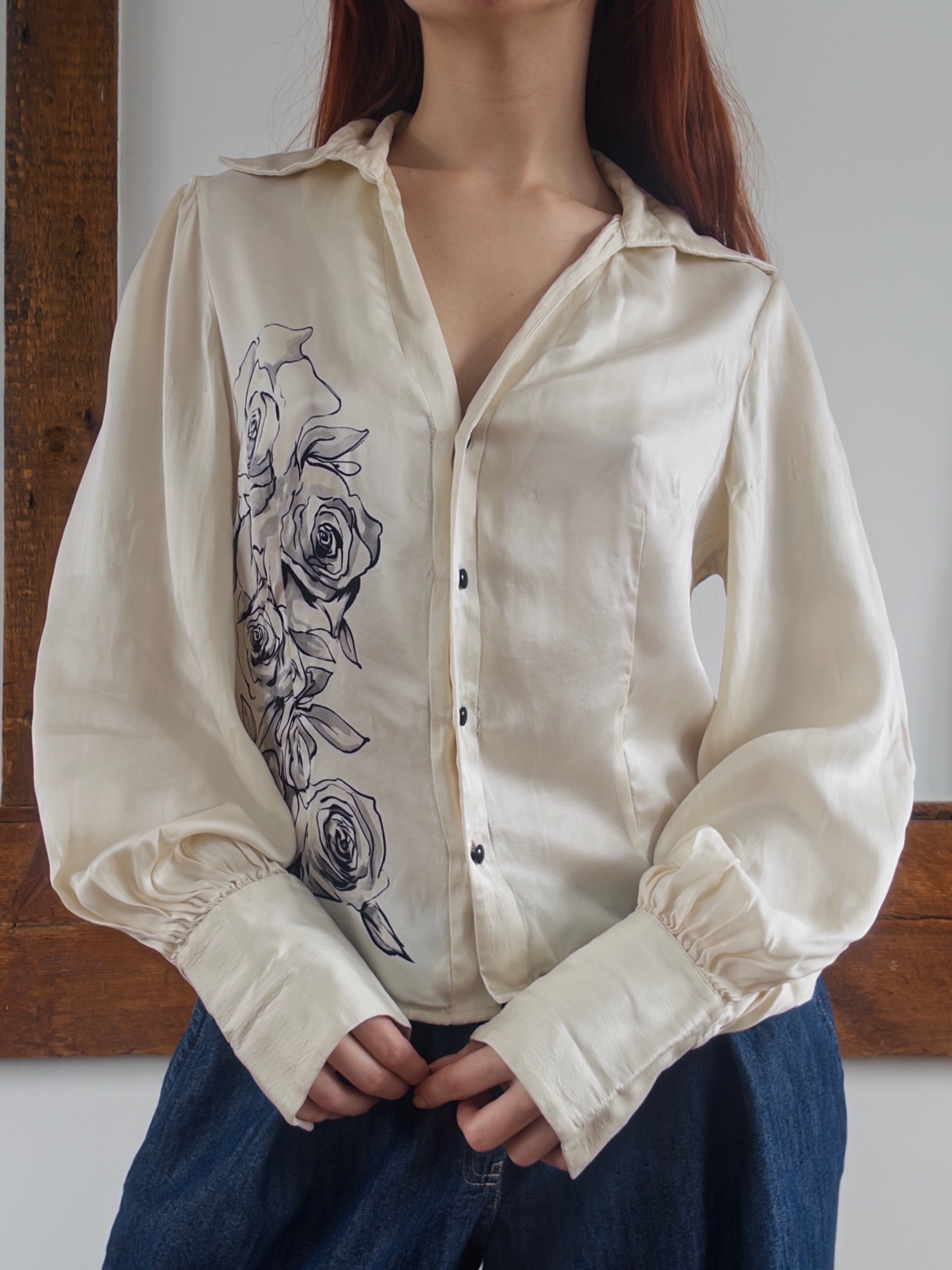 Shop › Silk Rose Bouse Image 1 of 5 Image 2 of 5 Image 3 of 5 Image 4 of 5 Image 5 of 5 Silk Rose Bouse $40.00 y2k vintage 100% silk blousesize mediumsome distressing at the seams Add To Cart Added! y2k vintage 100% silk blousesize mediumsome distressing at the seams