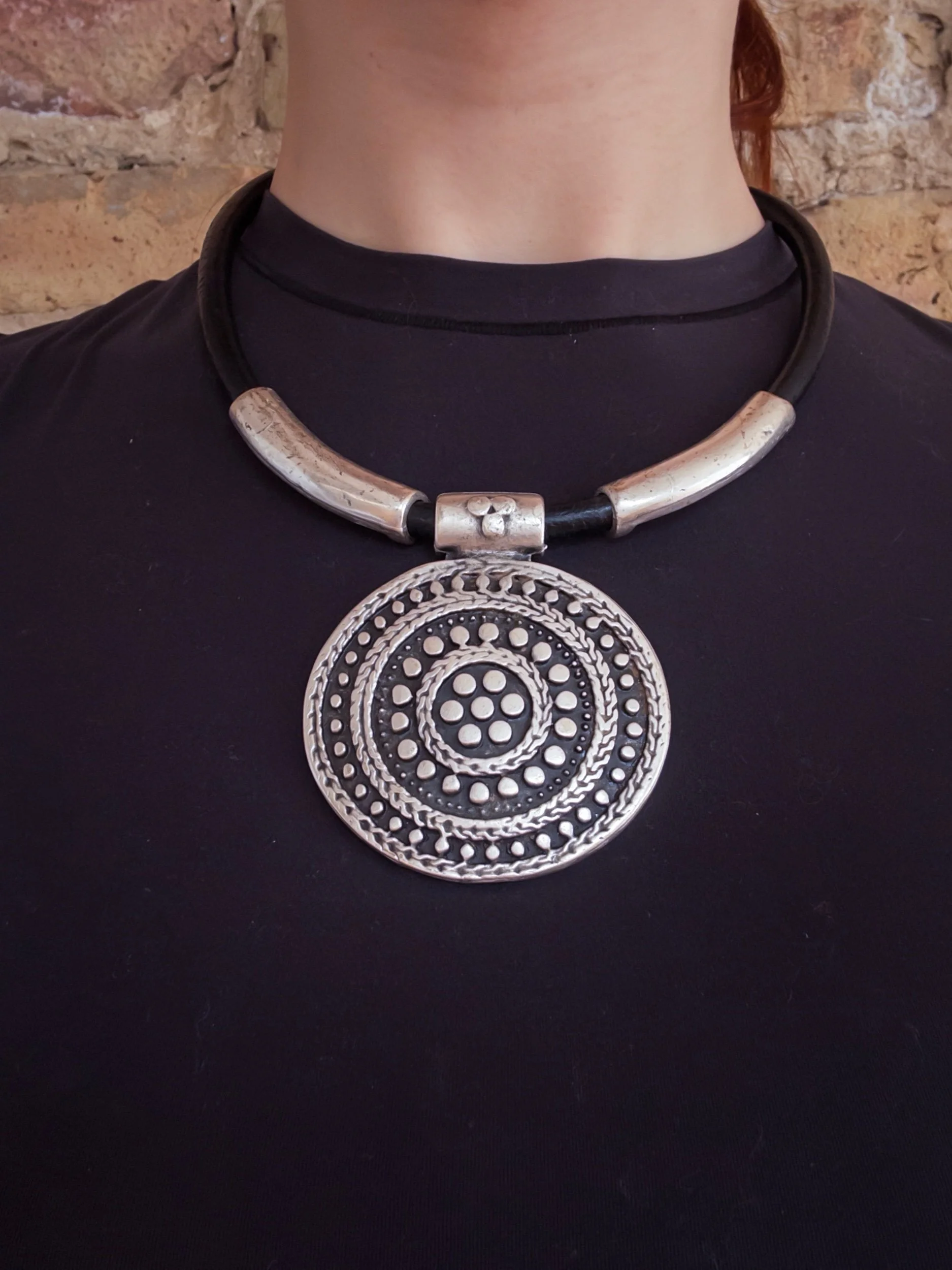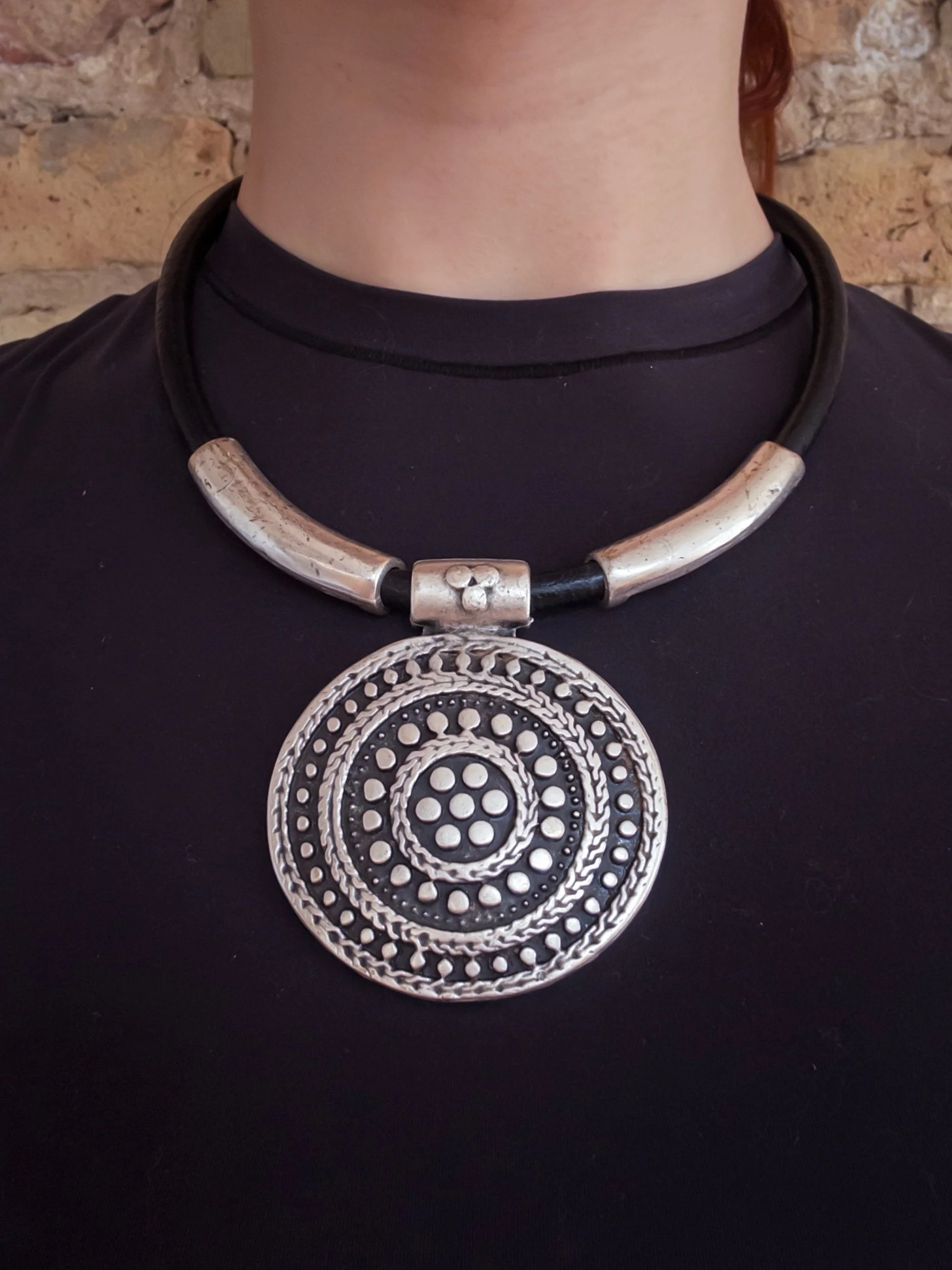 Shop › Medallion Necklace Image 1 of 3 Image 2 of 3 Image 3 of 3 Medallion Necklace $36.00 y2k vintagesilver tone, unknown materialadjustable length Add To Cart Added! y2k vintagesilver tone, unknown materialadjustable length